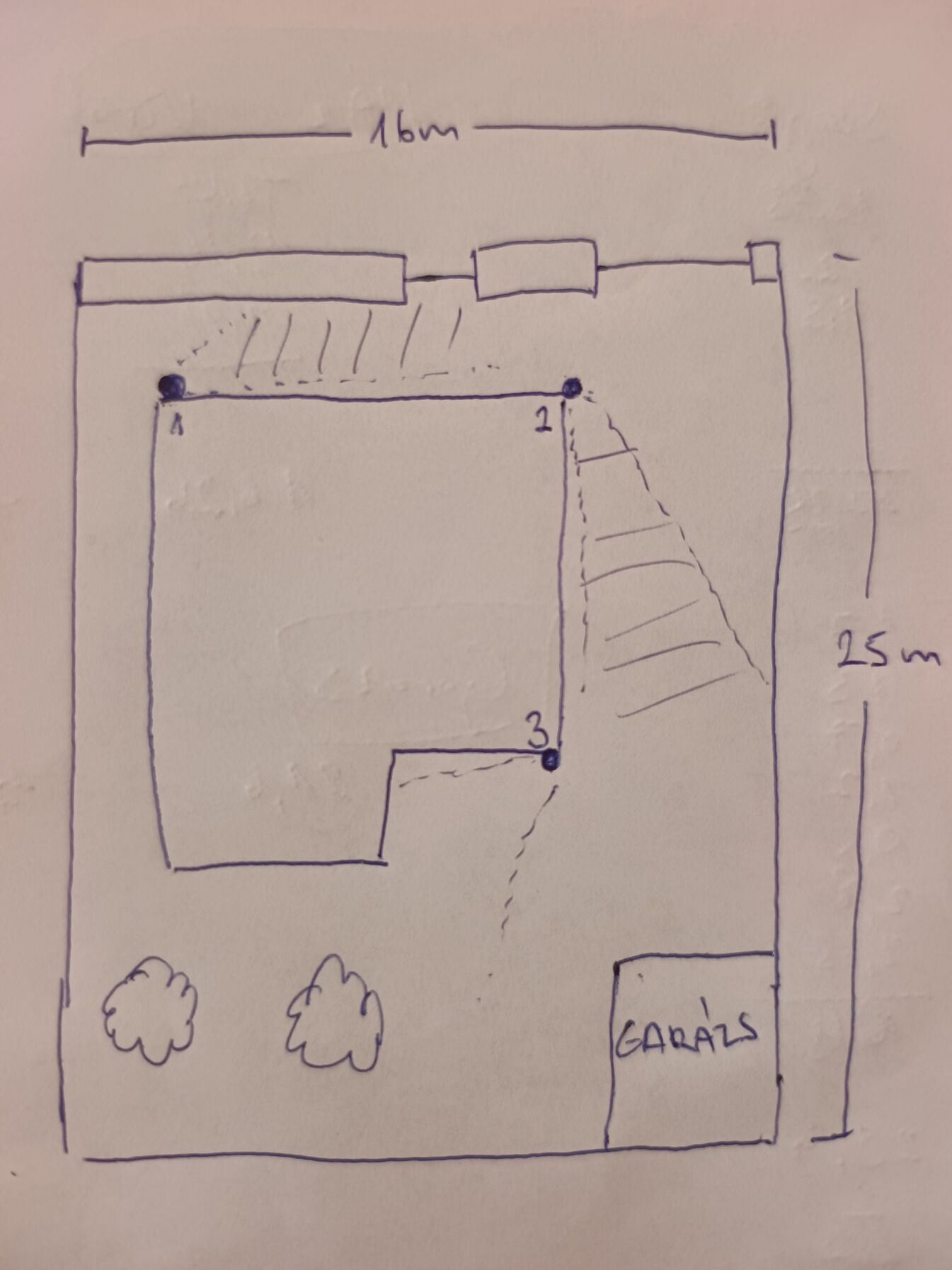 4. Mekkora területet szeretnél figyelni (hány méterre van a kerítés vagy az utcafront)? Csinaltam rajzot a kamerakrol, illetve telek alaprajzrol [kép] . A kiallasok mar keszen vannak.