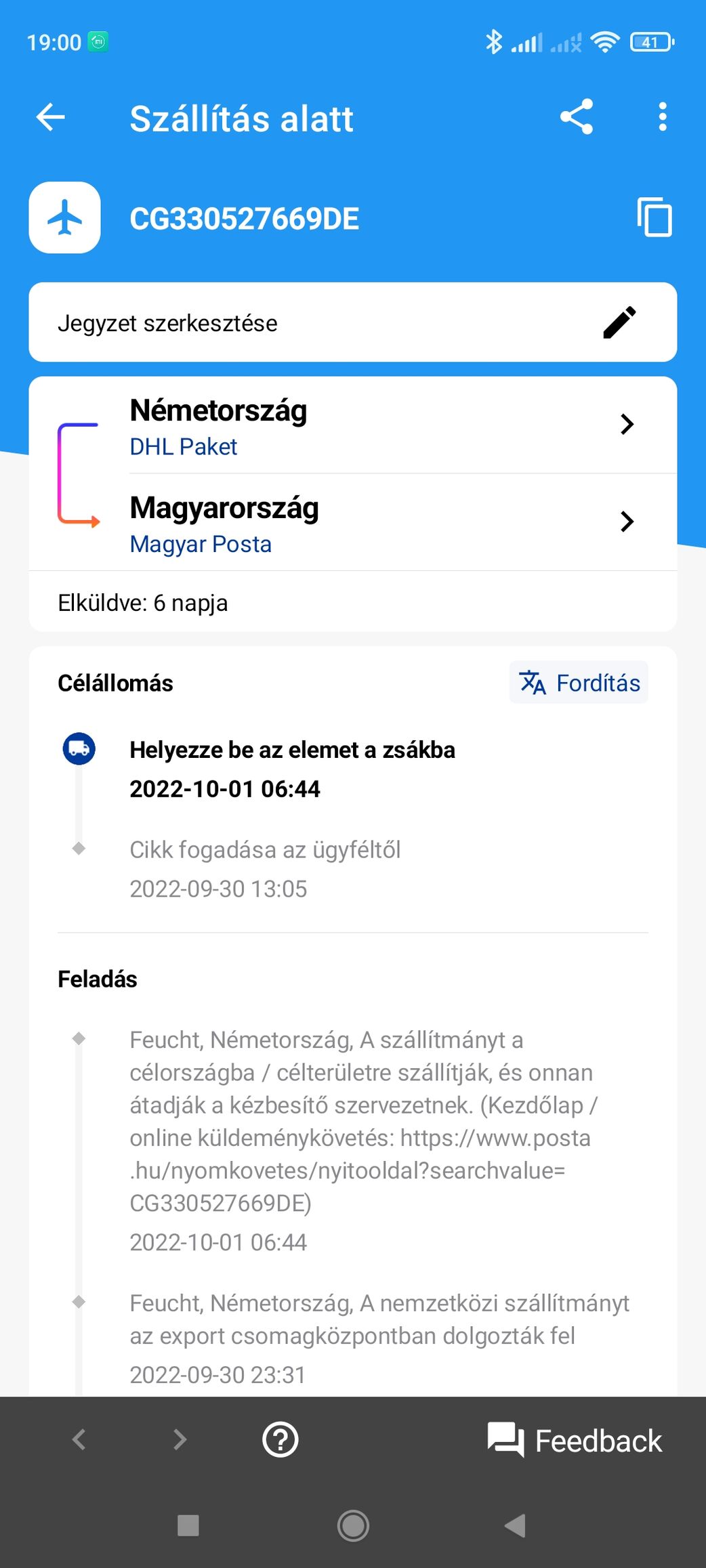 Esetleg említsd meg, hogy jó lenne másik szolgáltatóval szállítani a csomagot, mert a Feucht-i helyzet tarthatatlan, ott sorra tünnek el a csomagok (elnyeli őket a föld), már sokadjára másnál is.