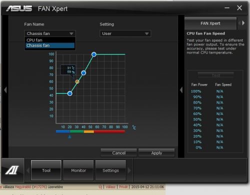 Akartam mondani, hogy a BIOS beállításokkal rendesen lehet szabályozni minden típusú ventit. A Q-fan kontroll aktív legyen és a profil "manual". A fan speed low limit a (teljesítmény) riasztás alsó határát állítja esetleges venti meghibásodásnál.