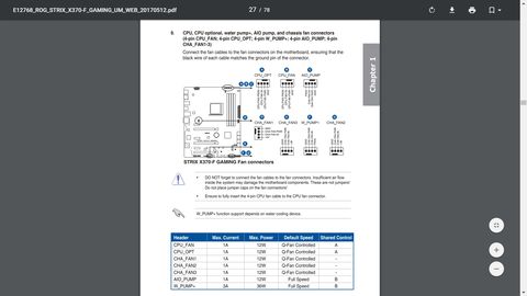 Köszönöm a választ. Az alaplap egy Asus M5A99X EVO R2.0 - User Manual szerint van rajta 1x 4pines CPU fan és 4x 4pines fan csatlakozó