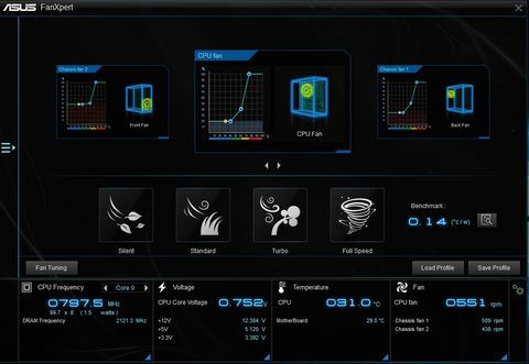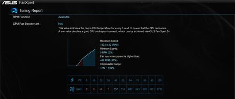 A mostanin a lábkiosztás alapján szintén hibrid, azonban a BIOS ezt felülírja. Ez egy eléggé csúnya dokumentációs hiba az ASUS-tól, mert a gyakorlatban kevesebbet kapsz, mint elméletben (a szerencsésebb fordított irány is előfordul, több alaplapnál derült ki, hogy a lábkiosztás alapján PWM-esnek tűnő csatlakozó a valóságban hibrid).