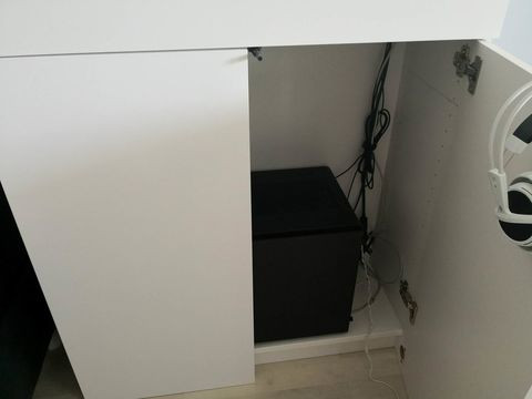Ezért a többiek javaslatán felül ésszerűbb lenne az asztalra vagy a szekrény tetejére tenni a gépet, mert egy jól szellőző ház is problémás a jó légáramlástól elzárva.