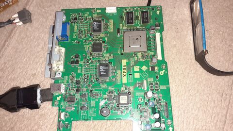 Ez kb. 20 éves technika. Ebben még nem volt minden összeintegrálva. A TFT panelt a fémtokos chip hajtja meg, a két Samsung RAM a frame buffer.