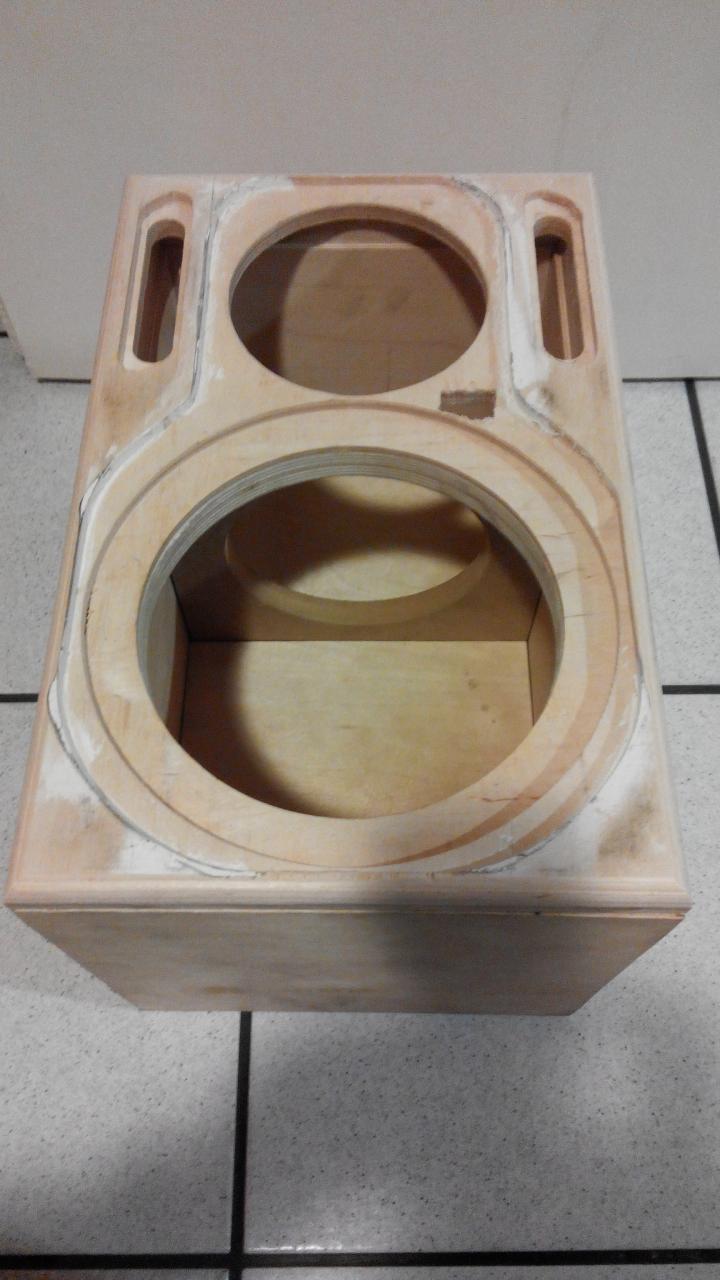 Ha a teljes összeragasztás, és felületek csiszolása után nem tetszik a doboz, akkor festeném valamilyen színre. Mondjuk nem tudom mi lenne a dögös a galamb szürke hangszóró keret mellé. Tipp?