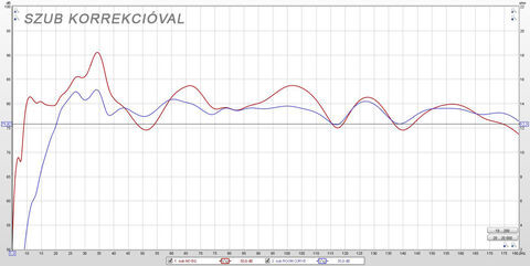 Ha már haladóban vagyunk elvileg, talán belefér pár mérés. A jelet pc-n az EQ APO módosítja, a korrekciót pedig VoidXS önbemérő rendszere a Cavern QuickEQ készítette (hangerő, késleltetés, EQ). Flat helyett a house/room curve-t céloztam meg. Így néz ki visszamérve első körben: