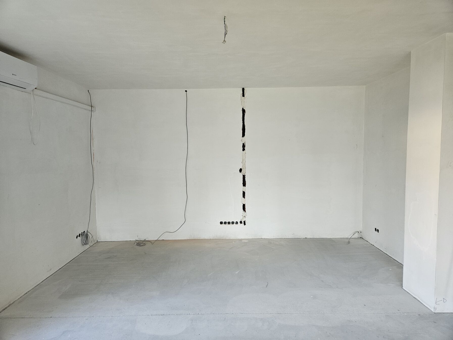 Opció lehetne, hogy mivel lesz egy gipszkarton doboz a mennyezeti sarokban végig, így ott el tudnám vinni hátra a kábelt. Viszont onnan meg lefelé kellene vésni a hangfalakhoz a kiállást, ami problémás, mert keresztben futnak az elektromos vezetékek (a kötődobozok magasságában, lásd a képen). Emellett pedig többen tanácsolták, hogy ne vigyen a hangfal kábelt hosszan az elektromos vezetékek mellett (10 méter), mert sok zajt összeszed.