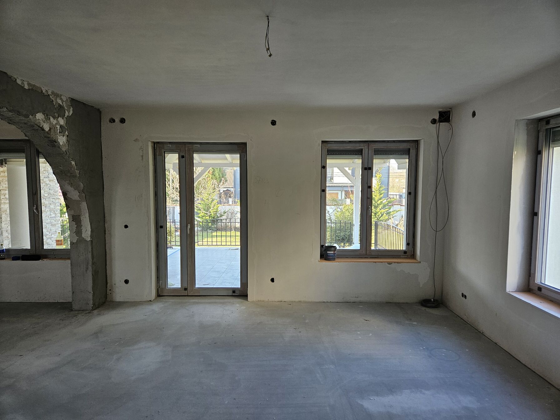 Másik ötlet, hogy a padlóburkolathoz olyan szegélyt választunk, amiben elférne kábel és alul futna végig. Ezzel viszont az a bajom, hogy az erkélyajtónál nem tudom rejtve továbbvinni a kábelt, mert ott nem lesz szegély, szóval nem tudom, hogyan vigyem át a kábelt az erkélyajtó másik oldalára. -