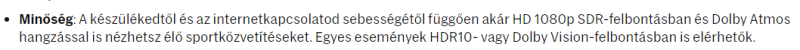 Vagyis itt csak 1080p max-ról írnak, de a mivel a sajtóközleményben 4K-s sport tartalom is szerepel, így elképzelhető, hogy pl. az Olimpia az 4K-ban lesz elérhető (akár Dolby Vison/Atmos támogatás mellett). De ez jelenleg csak spekuláció.