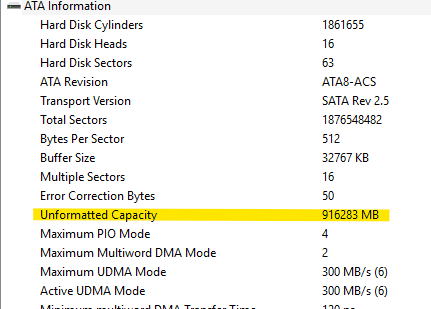 A cmd írja is, hogy "960 GB". Pontosabban az előtte lévő hosszú számsor a lényeg, ami byte-ban van megadva. A mögötte lévő az átverés.