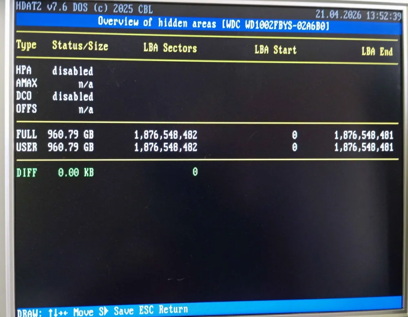 HPA és DCO sincs engedélyezve rajta, így nem az a gond.