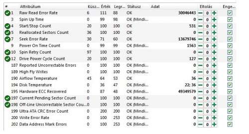 A sentinel szerint 100/100 a merevlemez a SMART ban pedig ez volt: