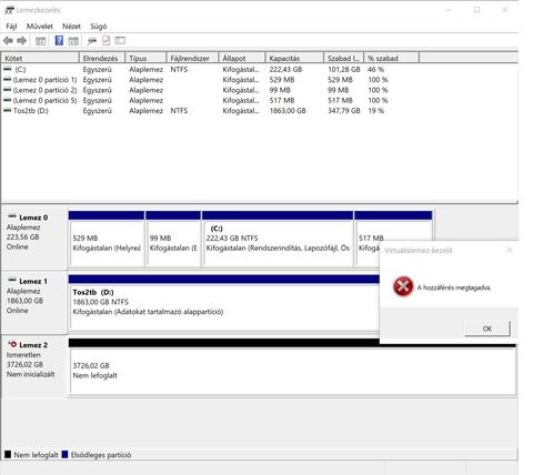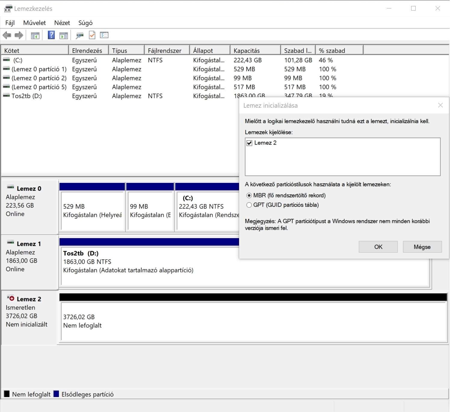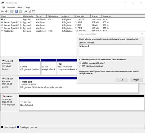 Hello, van egy WD green 3tb-os hddm, 2-t ismer fel a wondows 10, miért? Hogy lehet beállítani, hogy mindd a 3-at felismerje?
