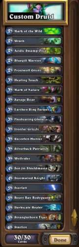 Swipe kettő daerab, must have. Wrath-ból szerezz be még egyet, mert elég jó lap. Starfall is jó. Én még a Claw-ot is szoktam használni mert a két hp-s minionokat le tudod vele szedegetni.Hiretelen ennyi. Rugóhoz nem értek annyira.