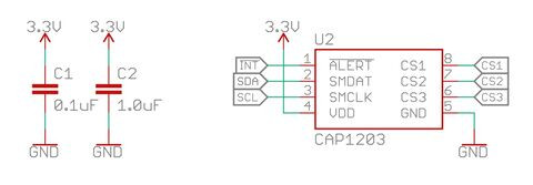 Kedves fórumozók, az okos termosztátomhoz a Microchip CAP1203-as érintőszenzor áramkörét szeretném használni a 3 db. érintős nyomógomb kezeléséhez. Teszt céljából megvásároltam a SparkFun Capacitive Touch Slider modulját, hogy lekoppinthassam, ha megfelelően működik. (Direktben használni a modult elsősorban a méretei miatt nem lehet.)