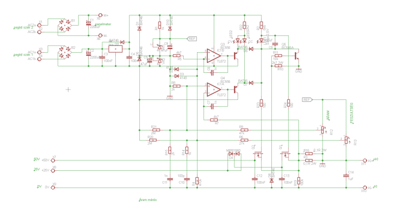 A felső egy lebegő opampos táp tervem, ami kettős szekunderű trafó esetén, egy G vagy H osztályú erősítőhöz hasonlóan próbál spórolni a disszipációval.