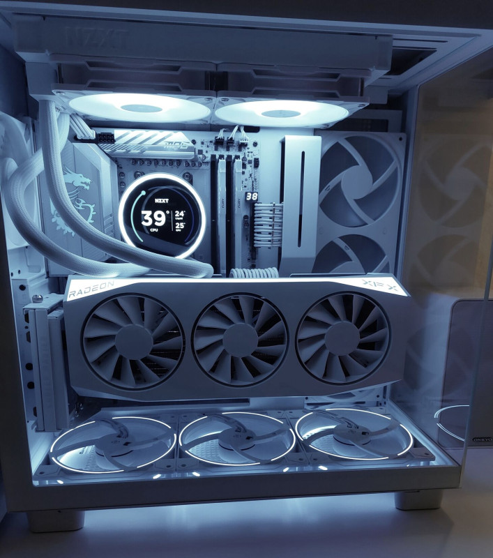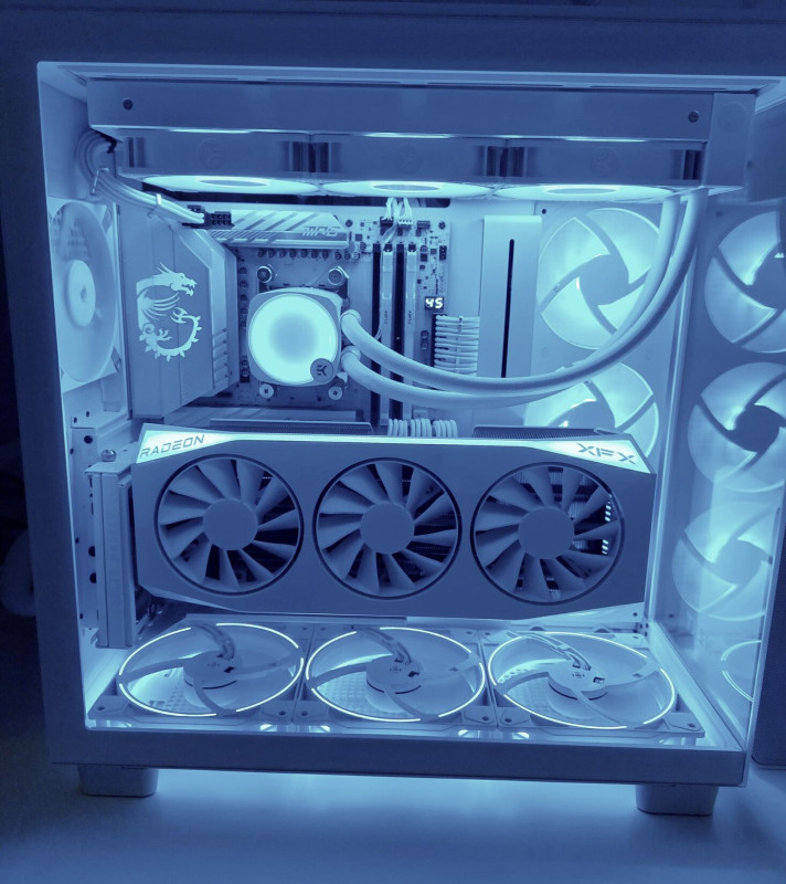 Hogy on is legyen, visszakerült a Kraken meg a vertical tartó is, hát a tömlő elég neccesen fér el sajnos. + Arctic PRO14 ventik kerültek a raditárorra. (aki fehér házat épít, hihetetlen hogy 100-féle fehér színt használnak, az Arctic ventije szinte sárga)