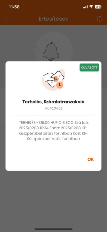 Inkább bement egy CIB fiókba, és befizette a pénztárban a számlaszámra, ezt tudom elképzelni, és igen, annak díja van sajnos.