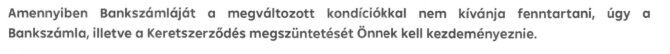 Bár van a felmondás utolsó oldalán egy ilyen rész, hogy ha a megváltozott kondíciókkal nem kívánja elfogadni, akkor nekünk kell kezdeményezni a keretszerződés felmondást, de ez nem tér ki az azonnali hatályú felmondásra.