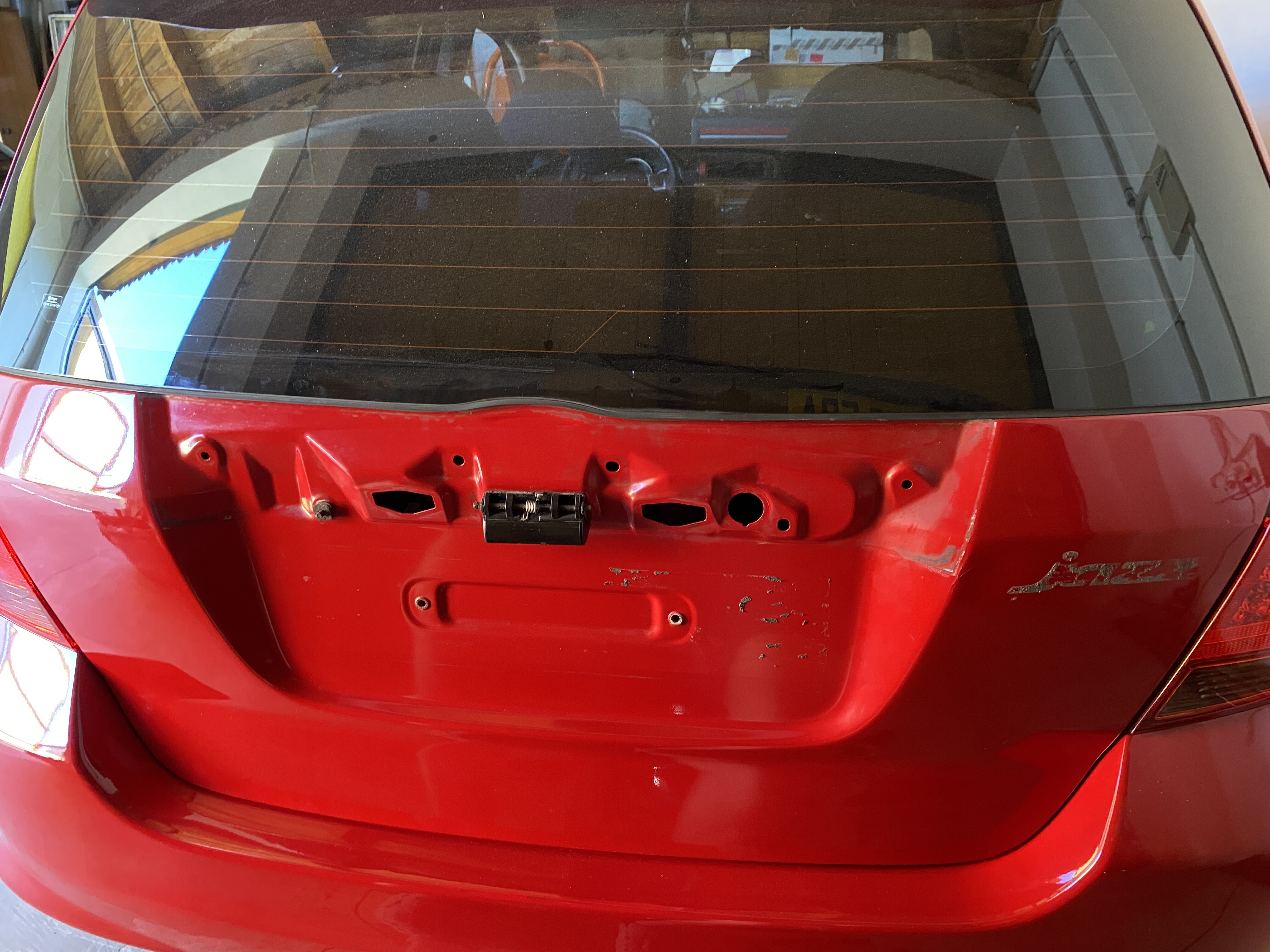 Itt van egy kis horpadás (belülről, a burkolatot leszedve kivehető), amit nem szépen javítottak (feltehetően még az Egyesült Királyságban, onnan való autóról származik), illetve a Honda emblémás műanyagelem fakóbb, mint a többi része.szerk.: Vagy az emblémára értetted a kérdést? Lehetetlen úgy leszedni, hogy ne törjön a 2 pöcök hátul. Nekem így nem sikerült, rögtön elpattant, ahogy alányomtam a legkisebb csavarhúzómat.