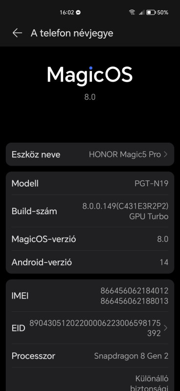 Én is ezért döntenék mellette. Jó lenne a Magic5 Pro de ha nem lehet kapni jó helyről akkor... Sajnos a Magic6 Pro meg drága még egyenlőre