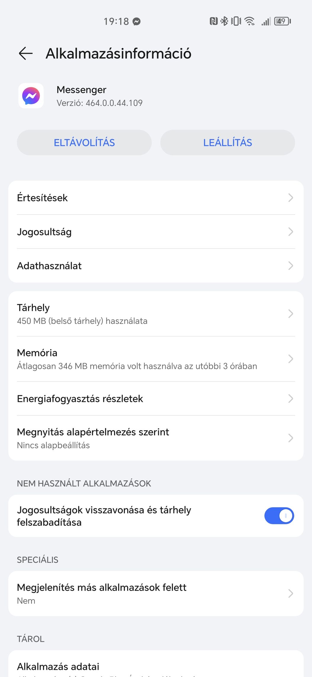 Minden értesítési engedély be van nyomva Messengerhez. Meg az automatikus alkalmazásfrissítés sem értem miért nem megy. Most is ránéztem, 21 app várakozik.....azt hittem ,hogy csak a P30 Pro volt ilyen gány, hogy hiába volt engedélyezve minden hálózaton az automatikus frissítés, sosem csinálta. Vagy csak néha töltőre dugva véletlenül. De ezek szerint ez is ugyanaz. Van, ami sosem változik. Már csak kínomban nevetek és inkább nem is foglalkozom ezekkel. Használom, aztán kész.