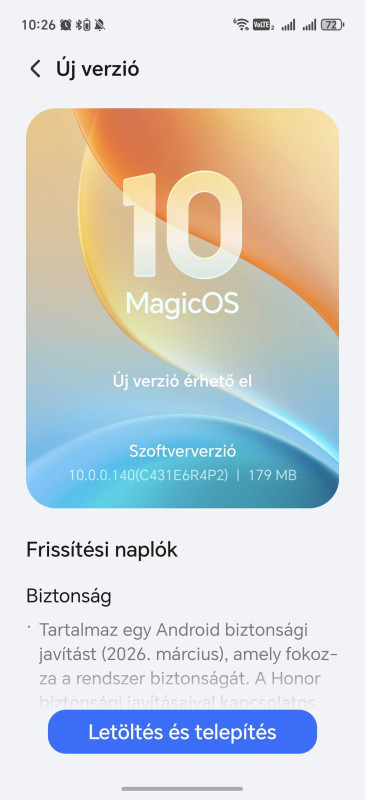 Azt szeretném kérdezni, hogy akinek érkezett rá MagicOS 10, neki C430-as modell van? Azt hittem azonnal arra frissít, de egy kb 8 GB-os frissítést töltött le MagicOS 9-re, még szeptemberi biztonsági szinten. Szeretnék most beleköltözni teljesen, de főverzió frissítésnél alapból újrarakom a telefont (megszokás, illetve hiba sincs sose úgy). Azért érdekes, mert valakinek meg már 1-2 hónapja lefrissült. Most próbálkozok Honor Suite-val, de az meg csak karikázik 10 perce.