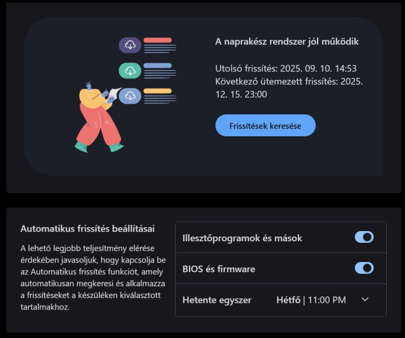 . A driverfrissítés alapból nem aktív, viszont a gyorsindítás még be volt kapcsolva. -