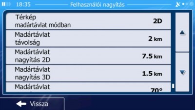 Többé kevésbé sikerült beállítanom a megfelelő értékű, felhasználói nagyítást. Automatikus madártávlatot kikapcsoltam, mert engem idegesít, hogyha indulás előtt szeretnék valamit nézni a vezető képernyőn: rábökök, majd a térképet odébb húzom, akkor nem engedi a műveletet, egyszerűen visszaugrik a képernyő, s nem reagál pl. a zoom-ra sem!