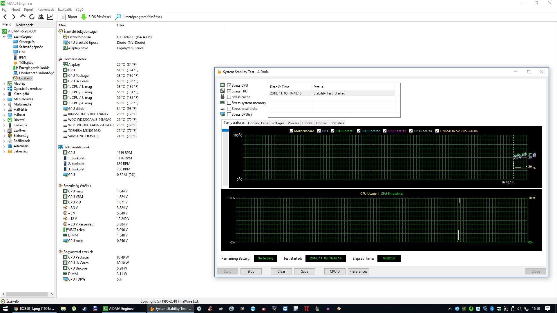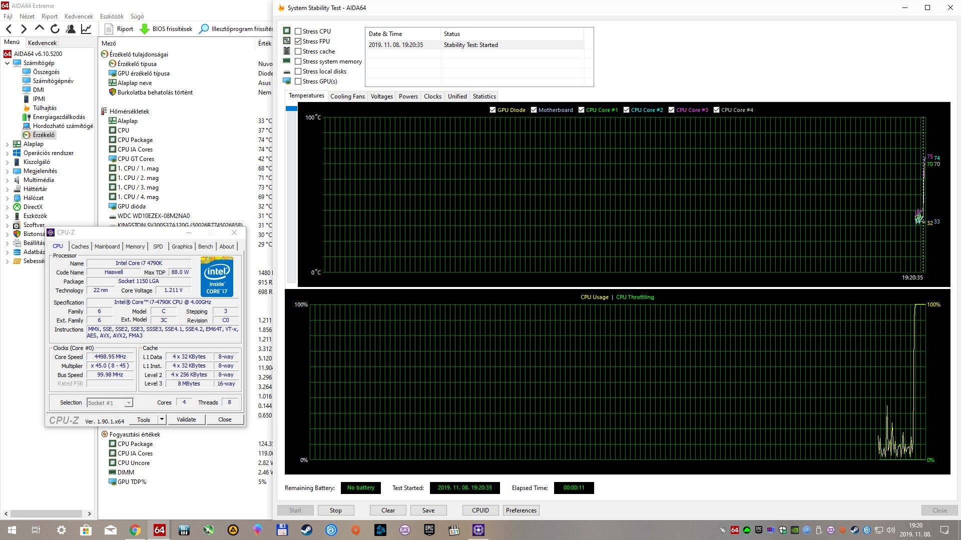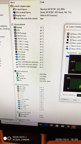 Egy rövid, 4-5 perces Aida64 " Stress test" után a következő értékek fogadtak :