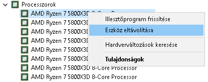 Windows eszközkezelőből töröld ki a processzor magokat, ilyen módon. Egyesével az összeset távolítsd el.