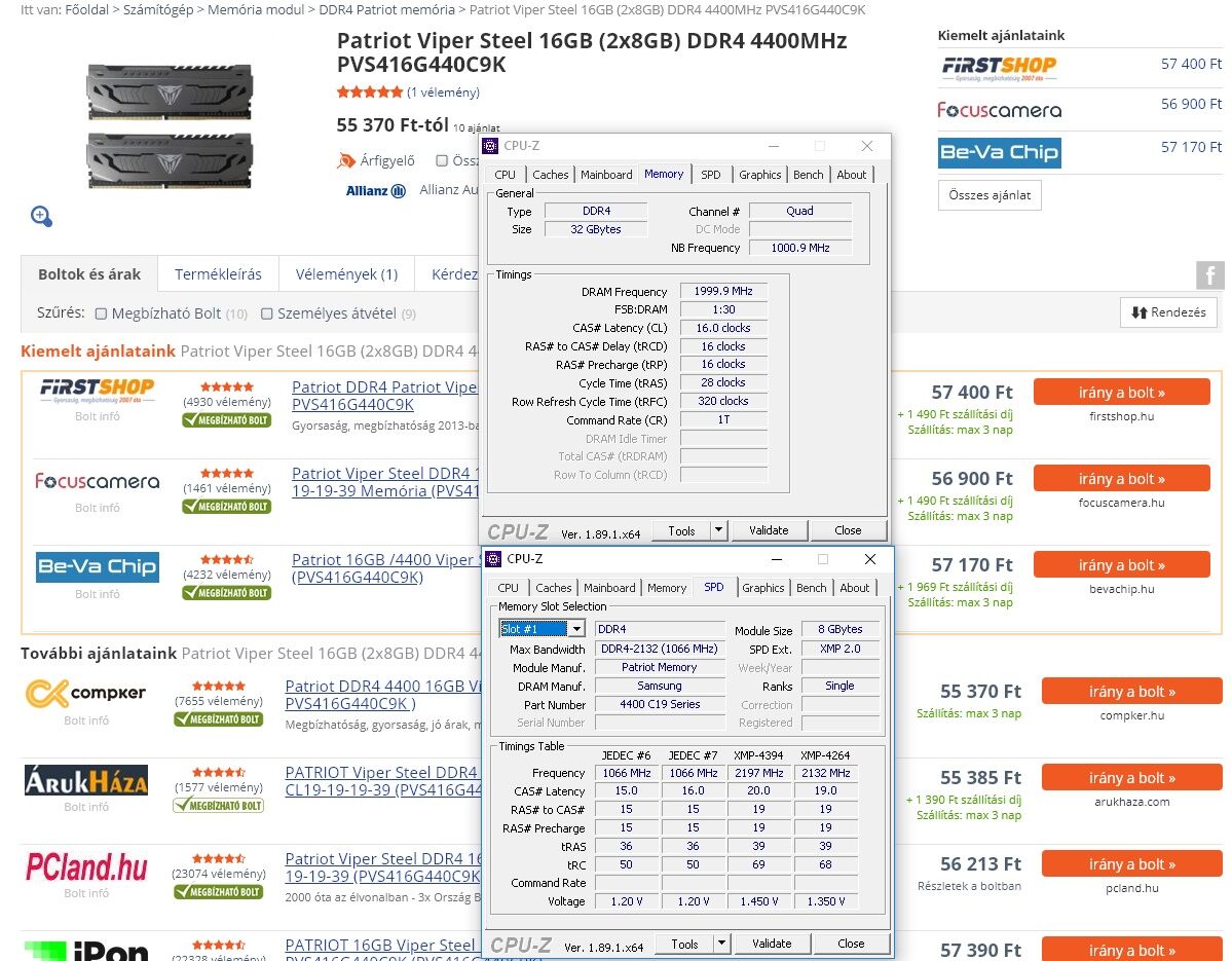 Én ajánlom mindenkinek a patriot 4400-as kitjét, occo is és gyors is.Az asrock x299 extreme 4 lap is nagyon jó választás volt anno. Toppon van mindenben, a ramok is nagyon jól mennek benne, és a 7900x-et is 5Ghz-en hajtom már jó ideje (ht off). A VRM sem melegedős (bár nálam szelős a ház.)