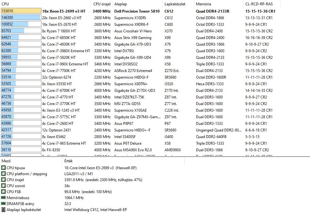 Közel 6 éve ezt tudta egy Dell RMA stockból kiszedett 2620v4: