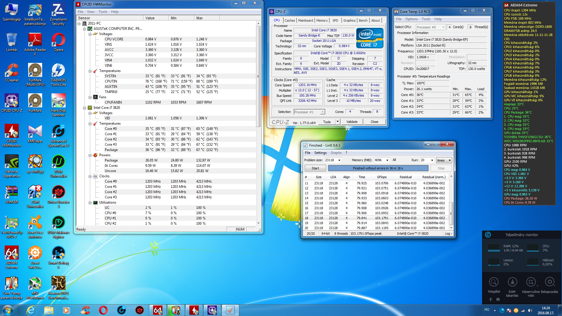 A beállitásokkak semmi gond a LinX teszt szerint. Lassan hanyagolhatnád az ősrégi Intel Burn Test-et és elfelejthetnéd a kőbalta (Windows 7) operációs rendszert! 2016-ot írunk!!!