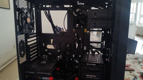 Szépen megfrodítottuk a proci hűtőt, ami így kintről szív befelé és átfúj a procin, az első három ventiből, a felső kettőt szintén megfordítottuk, azok így egyszerre fújják ki a prociról, felszabaduló meleget, közben az alsó, első venti úgy maradt, az pedig a videókártyának segít be, kifelé hajtani a levegőt, illetve a táp szellőzésében is besegít.