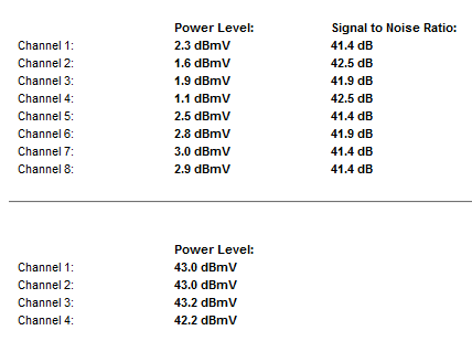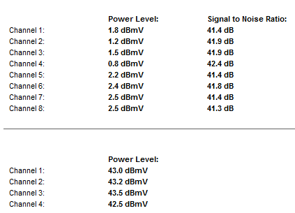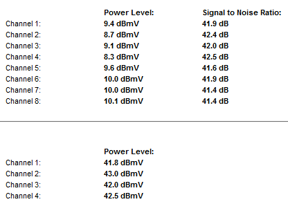 Pontosan, egészen jó az US tűrési intervalluma nálam, 35-36 C foknál lépi át a 45-öt éri el a 46-ot, és 38 fok fölött már 47 és 48 dBmV körül alakul. Akkor érte el nálam az 50-et amikor pont lecseréltem a Technetix-et a kettes osztóra, a parázás szerencsére csak rövid ideig tartott, másnap még rám ijesztett, mert kiesett egy US csatorna - de pont azon az éjjelen volt egy inviteles karbantartás is -, de ennek lassan már negyedéve, azóta volt öt hőhullám is, valamint 49 fölött azóta sem láttam szerencsére