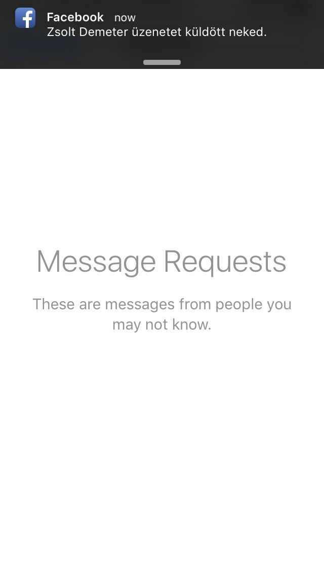 Na erről beszélek! Direkt beléptem a felkérések menübe es ott csináltam képet! Más is tapasztal ilyet? Ahogy látható nem a messenger értesít hanem a Facebook app, de nem jelenik meg a felkérések közt sem! Engem ez nagyon idegesít, ha bárki tudja mi ellene a megoldás, kérem ossza meg velem! Előre is köszi!