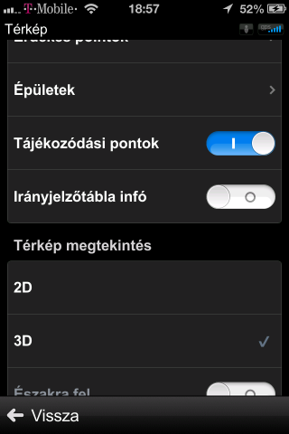 Kikapcsolható (három állásban) az épületmegjelenítés:
