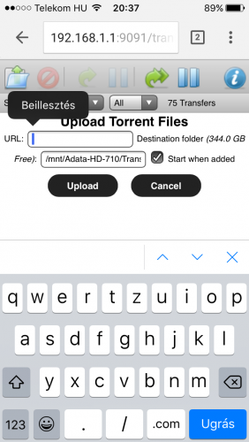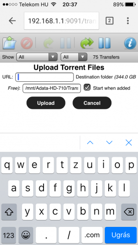 Hogyan érhetem el a torrent file-t amit valahova letölt az 5C? Letöltéskor felajánlja a Gmail-t, a Jegyzeteket és most hogy telepítettem egy File Manager-t azt is. Szépen meg is jeleníti ez a program a letöltött torrent file-t. Azonban, amikor a Safarival behívom az otthoni routerem usb portján lévő wincsire dolgozó Transmission-t és ott próbálom Upload-olni a kis torrent file-t akkor fogalmam sincs hogyan érhetném el? Találtam egy kommentet ahol valaki belinkelte hogyan lehet telepíteni a Kodi-t, de én nem a telefonomra szeretnék letölteni, csak a letöltést megindítani az otthoni wincsimre. De ehhez be kellene tudnom tallózni a letöltött file-t. Tehetek valamit, vagy erről le kell mondanom?