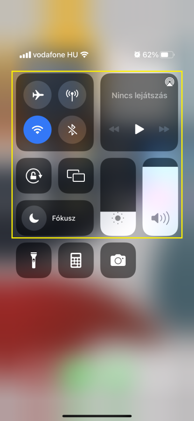 Eltávolíthatok listájában pl. csak a zseblámpa , számológép és kamera szerepel.Felette lévők pl. fókusz, hangerők, lejátszás, tükrözés, képernyő forgás zárólás, gyűjtő mappaa wi-fi, mobil adat, repülő mód, bluetooth, személyes hotspot, airdrop fogadás