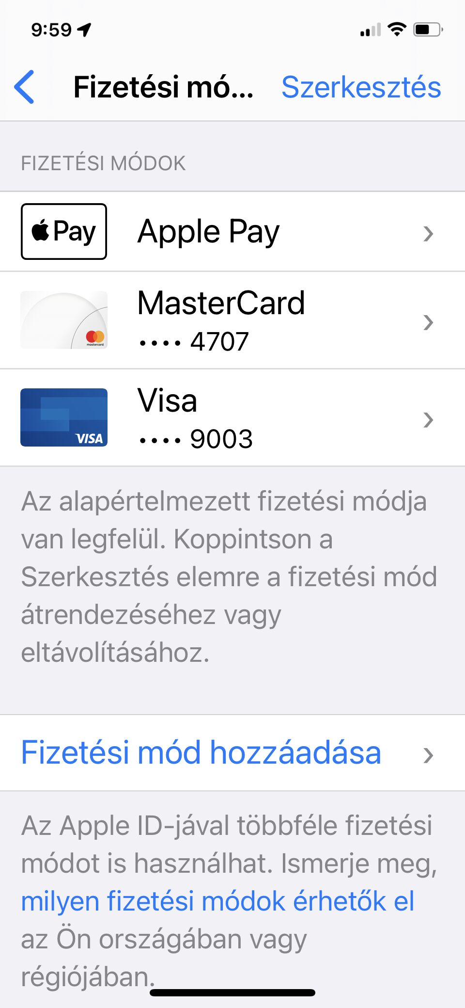 Ez a fizetési mód csak az alábbi elöfizetések megújitásához kerül felhasználásra, és lehet, hogy más eszközökön nem érheto el.Nálam az összes eszközön ott van az iCloudban a fizetés és szállításnál a b.kártya, amivel az AppStore-ban tudok vásárolni, vagy előfizetni pld az AM -ra.