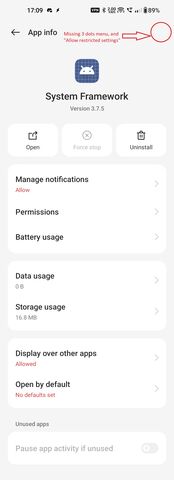 Sziásztok, az a problémám, hogy szeretnék Eszközadminisztrátor jogotadni egy alkalmazásnak, viszont ugye az Android 13-tól be kellene kapcsolni hozzá a Beállítások/Alkalmazások/Alkalmazáskezelés/ adott alkalmazás és itt volt régen jobb felül egy 3 pontos menü, amiben be lehetett kapcsolni a "Allow restricted settings"-et, na most ez a menü eltünt, van erre valami megoldás?