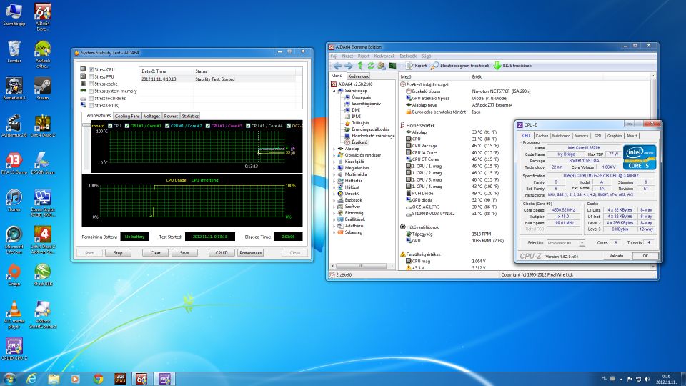 - alkalmazások/böngészés sok oldallal és mögötte futnak a monitorozó progik (cpu-z, gpu-z, hwinfo, aida, winrar, coretemp)