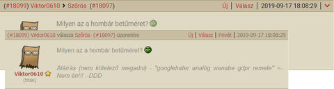 " Persze, én is csak egy vagyok abból az 500-ból, de szerintem ebben a topikban nem az első: ezen azért elgondolkodhatnátok, hogy jó-e, ha minden régi tagtól érkező kritikát egy mozdulattal söpörtök le az asztalról. "Szóval mikor megláttam az uj " TRENDI" oldalt emelkedett kb 100 al a vérnyomásom, ami a legjobb kb 5 ször néztem meg jött e uj üzenetem.. mire láttam a fekete mellett a hasonló kék szöveget az uj üzikre