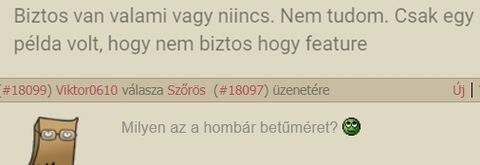 És ez még mindig jobb mint amikor valaki szintén hason írt, nézem 2009-ben regisztrált és az a hozzászólása volt mind a 38-ik. Kellenek az ilyen megerősítések, igaz közben kb 500 mondja, hogy egy így hulladék, az nem számít. Mert nem konstruktív kritikát fogalmazunk meg. Azért ez vicces, nem kicsit. Majdnem jobb mint a Sóder Clubb. -