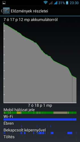 - wifi folyamatosan megyMáskor egy éjszaka alatt, úgy, hogy ment a wifi, 3g bekapcsolva, pedig nálunk nincs is, egy ettől hosszabb éjszaka alatt 8-10%-ot ha merült a telefon.