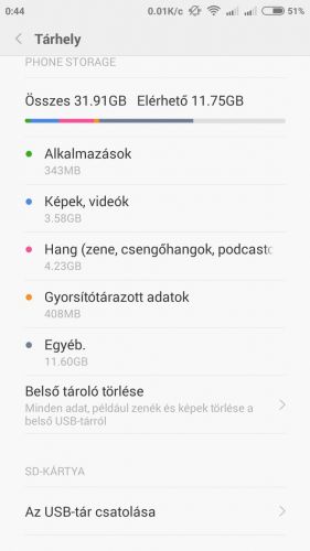 Minden olyan, ahogy szeretem. Nincs belső sd, "csak" 13GB szabad hely, ami csak várja az appokat. Meg a 32GB sd kártya (ami belső tárhely, de ez már csak didaktikai kérdés)
