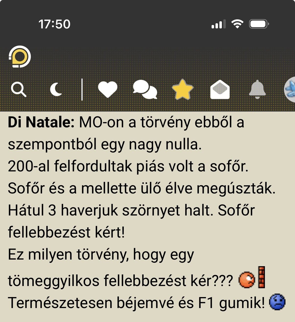 Utol se értem, visszamegyek "b" sávba mögé lemaradva 50méterrel. De már olyan büdös szagfelhőt húzott maga után, hogy ihajj.
