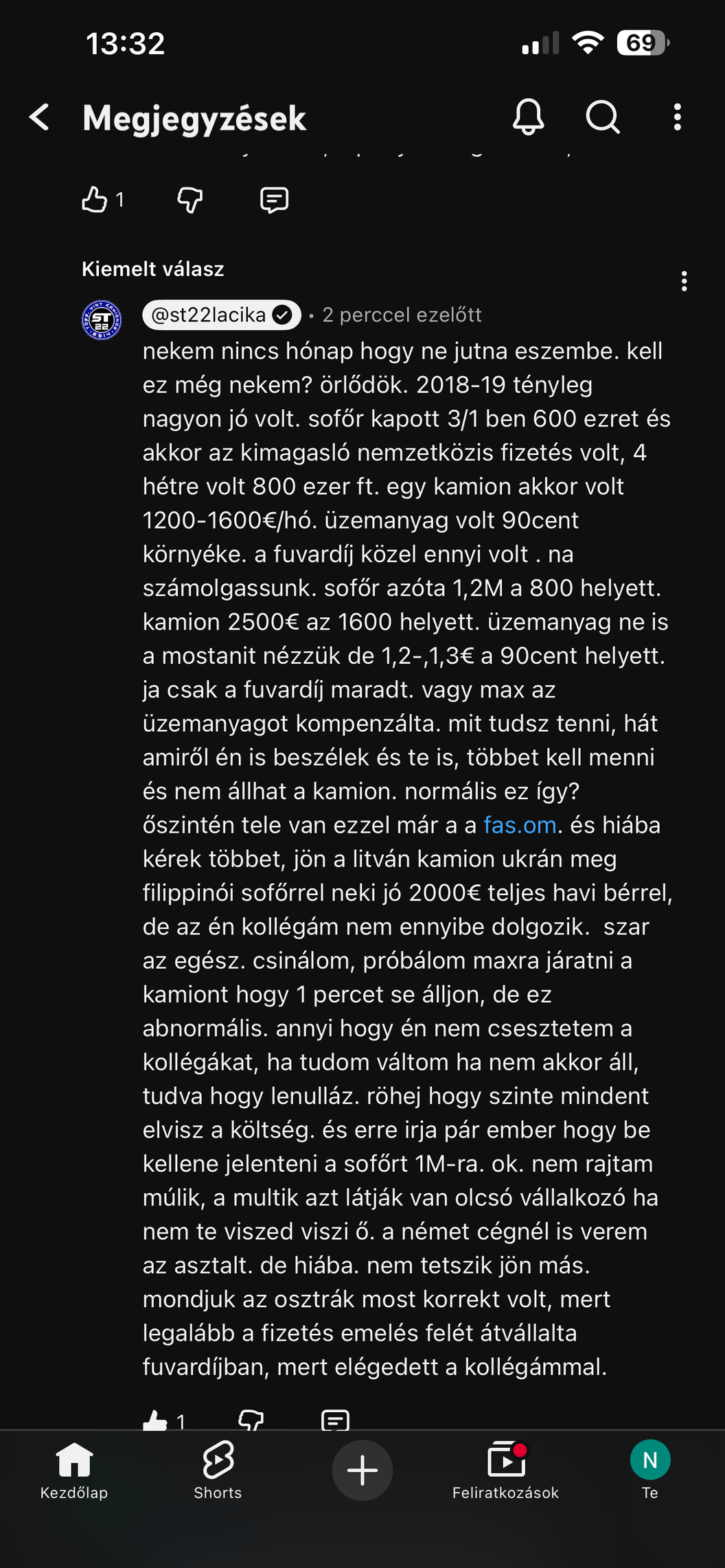 Én a régi és a mostani videóit is szeretem Lacinak. Nem is ítélkezem felette, hadd csinálja nyugodtan, amit akar, nem egy küszködő vállalkozás a világ legrosszabb tevékenysége. Médiajelenléttel, cégvezetői tapasztalattal és ismeretséggel most sokkal könnyebb dolga lesz elhelyezkednie, ha valaha bezárja a kamionos vállalkozását egy egyszerű sofőrhöz képest.