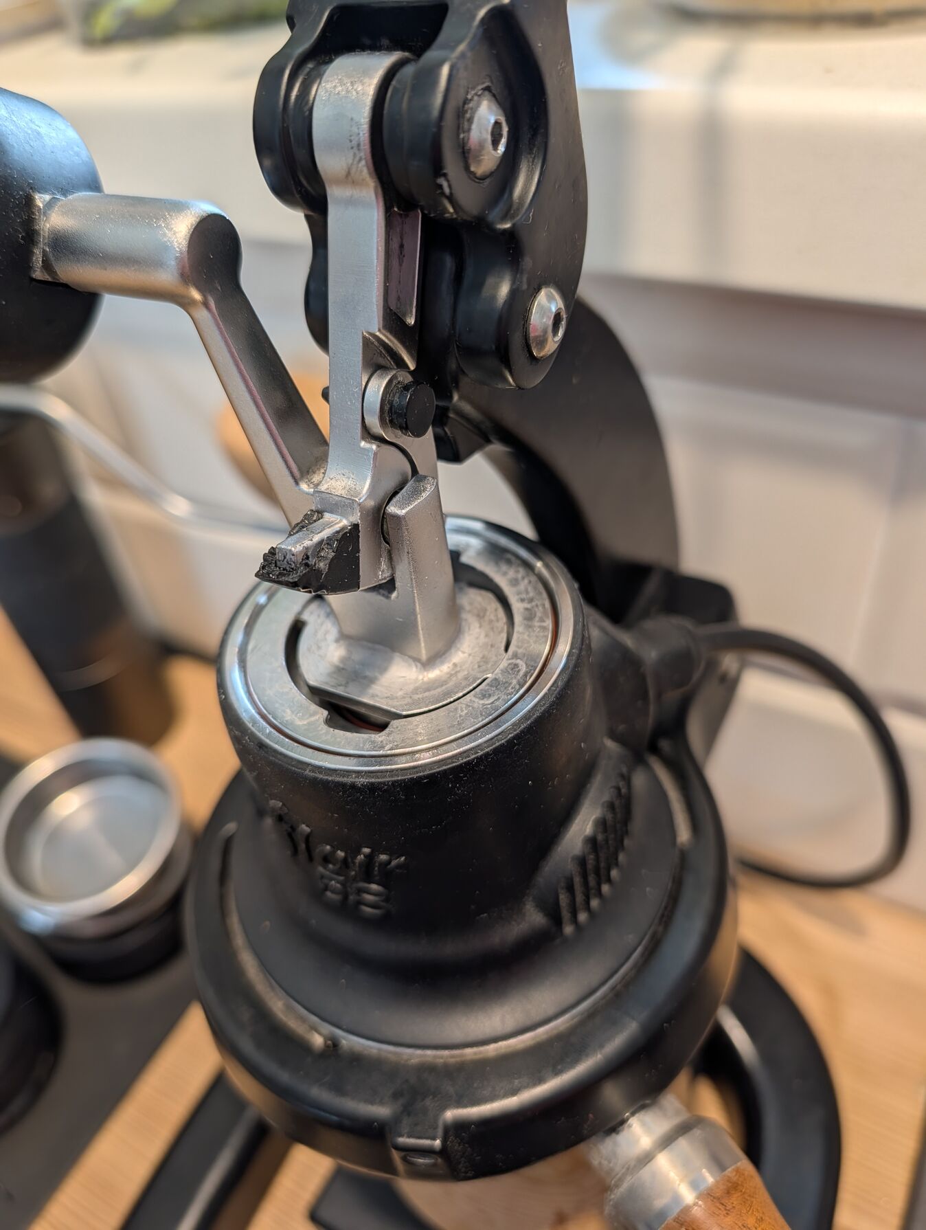 Én egy Pesado felsőszűrőt vettem, az süllyesztett csavarral jött, de két hét után eladtam, mert haszontalan dolog. Hogy ne érjen bele a csavar a pogácsába, egyrészt az LM gyári konvex tamperével tömörítek, másrészt középen lukas 0,3 milis puck screent használok.