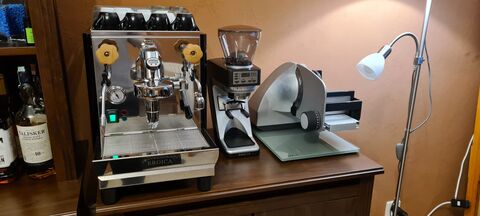 #100341Bazsee71: én is, hogy príma anyagot kaptam. A mai presszó már a Sette-vel készült, ~120 gramm kávé ment át rajta. Érdekesség, hogy a céges sokkal gyorsabb, mivel jóval durvább őrleményt kíván a Lelit.